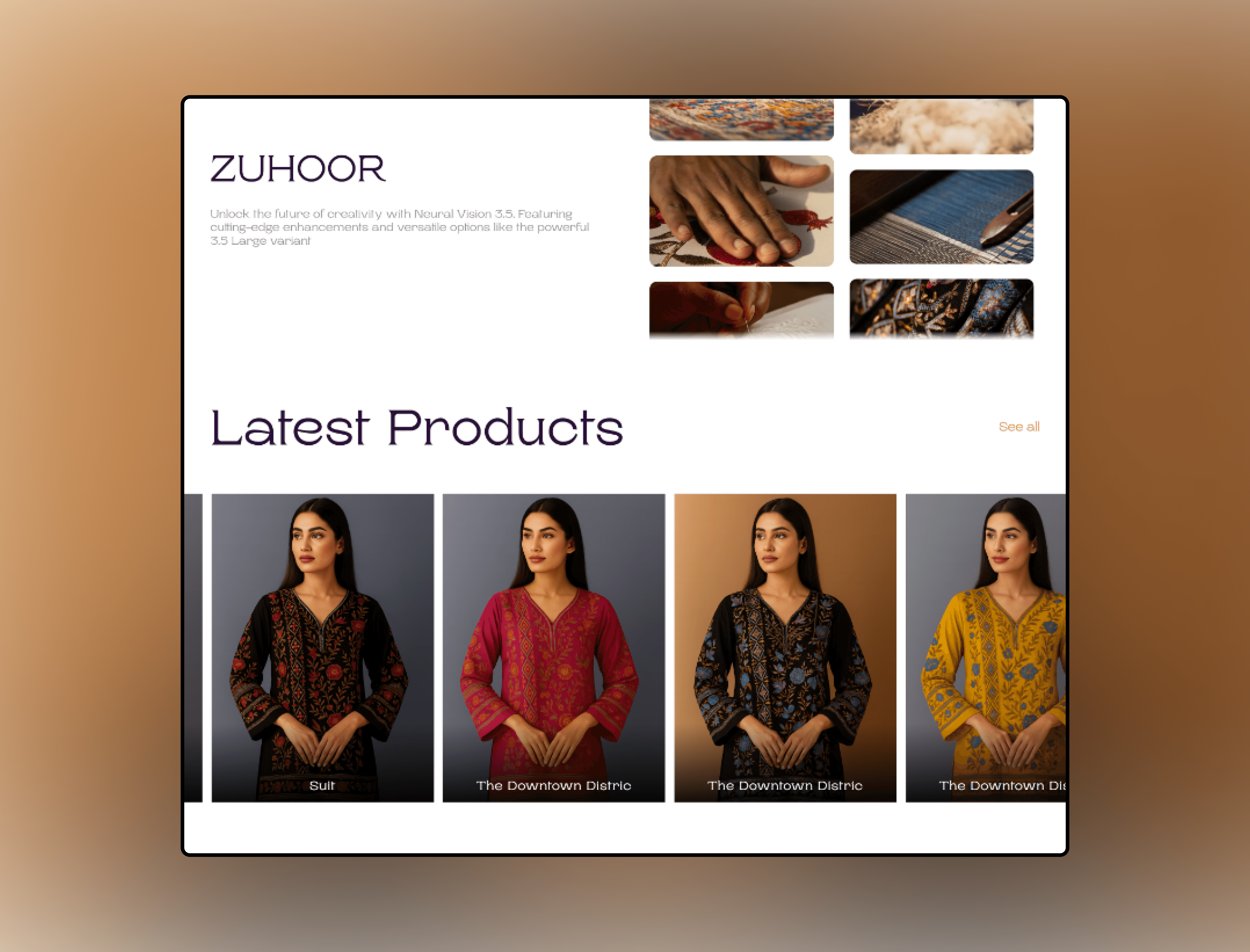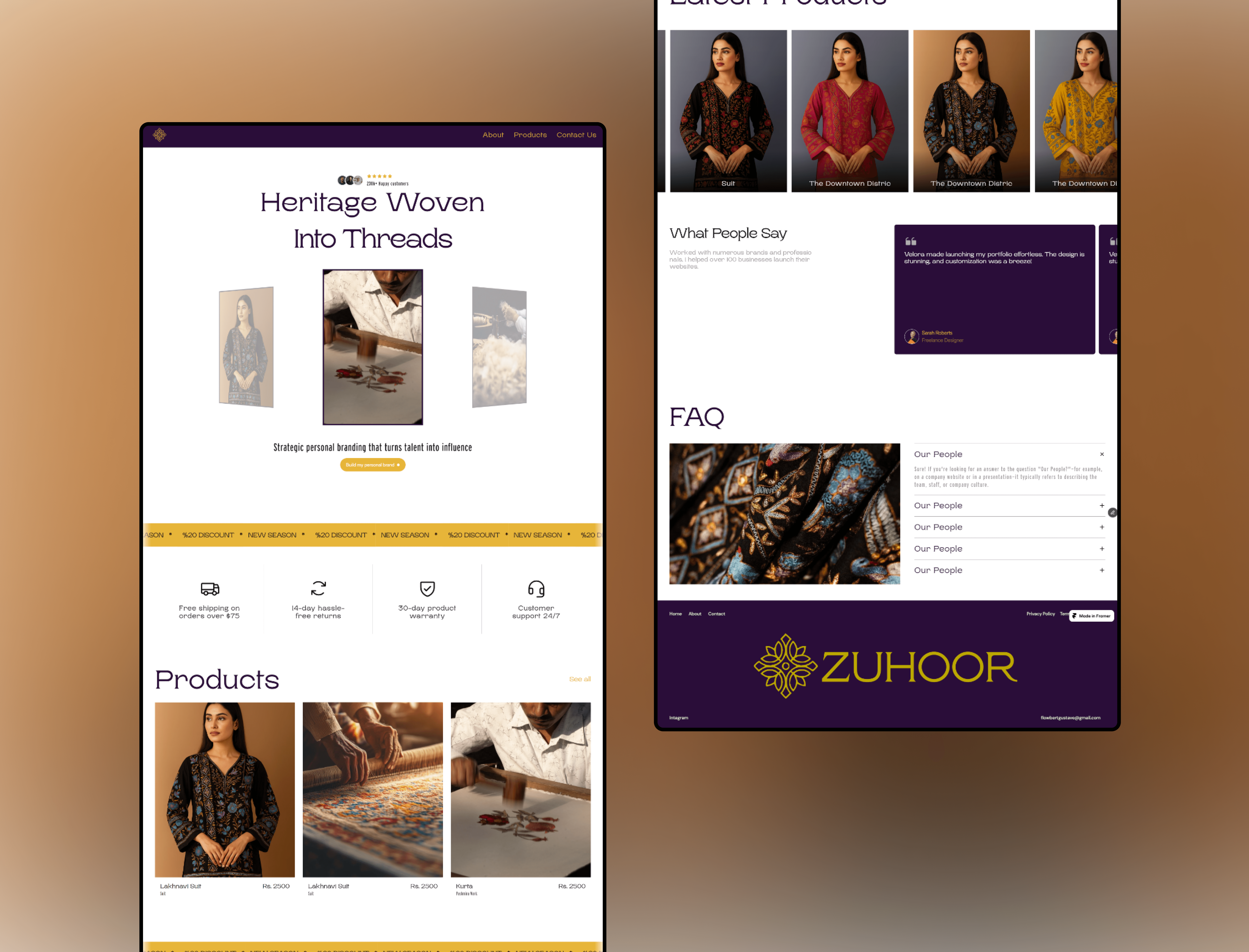 Zuhoor is a handmade clothing brand specializing in premium Indian textiles. They wanted an e-commerce website and a new brand identity to showcase the quality and authenticity of their garments.